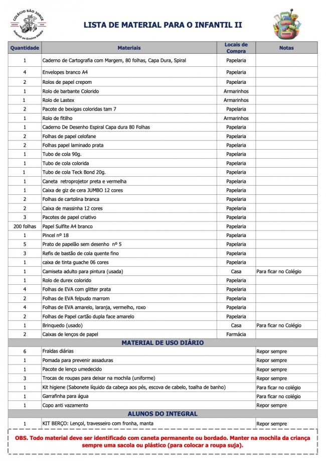 Lista de Material Infantil II