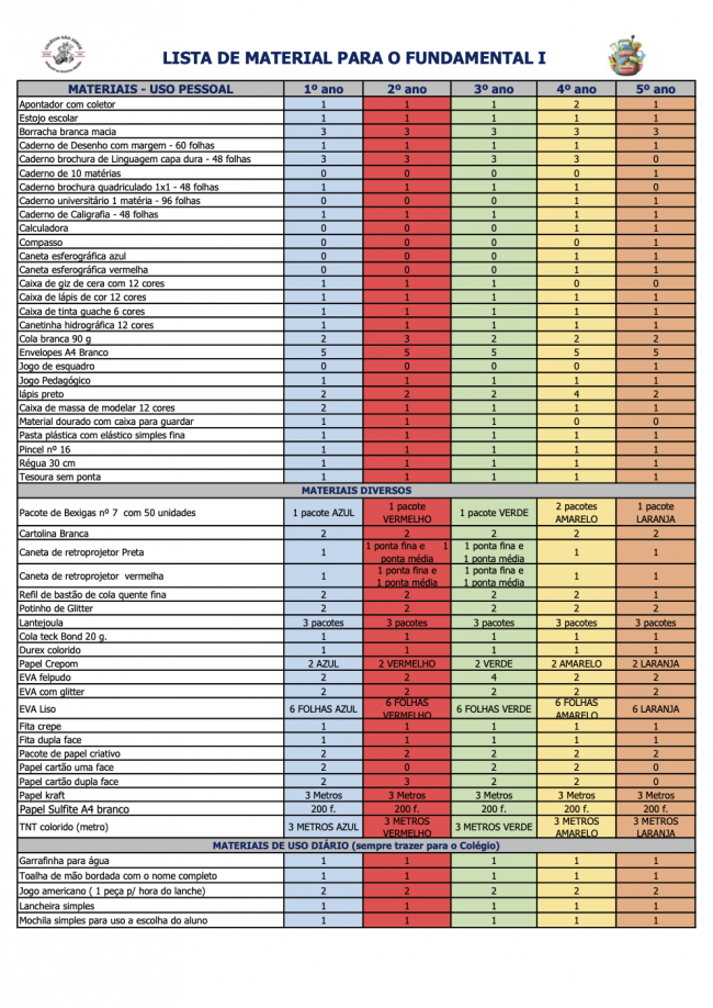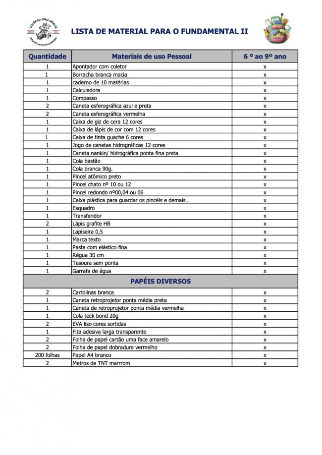 Lista de Material Ensino Médio