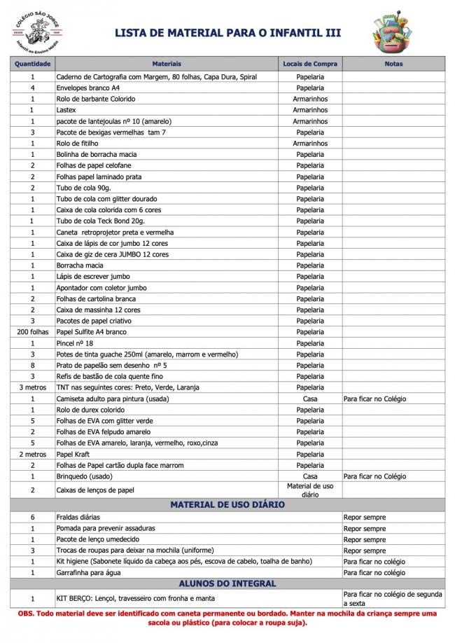 Lista de Material Infantil III