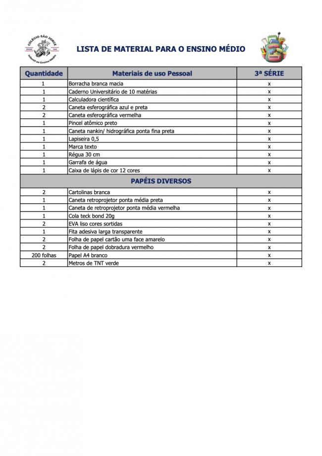 Lista de Material Ensino Médio